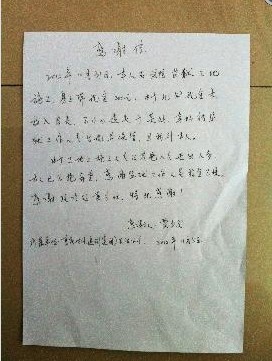 “当自己意识到丢失了这笔财物,本来已经不抱有任何希望了,没想到会失而复得,非常感谢监狱民警拾金不昧,帮我找回了丢失的财物,特写此感谢信表达自己的心情。”11月5日,一位在涪陵监狱施工的甲方施工人员,亲手将感谢信交到政治处工作人员手中,无尽的感激之情溢于言表。