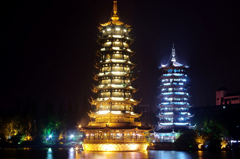 夜幕下的双塔(广西区桐林监狱 林雅青摄影)