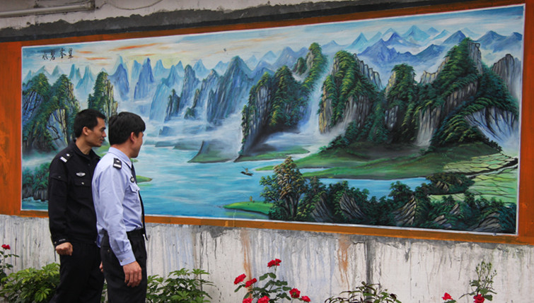 墙画《山》 (柳城监狱 梁正 王家斌 摄)