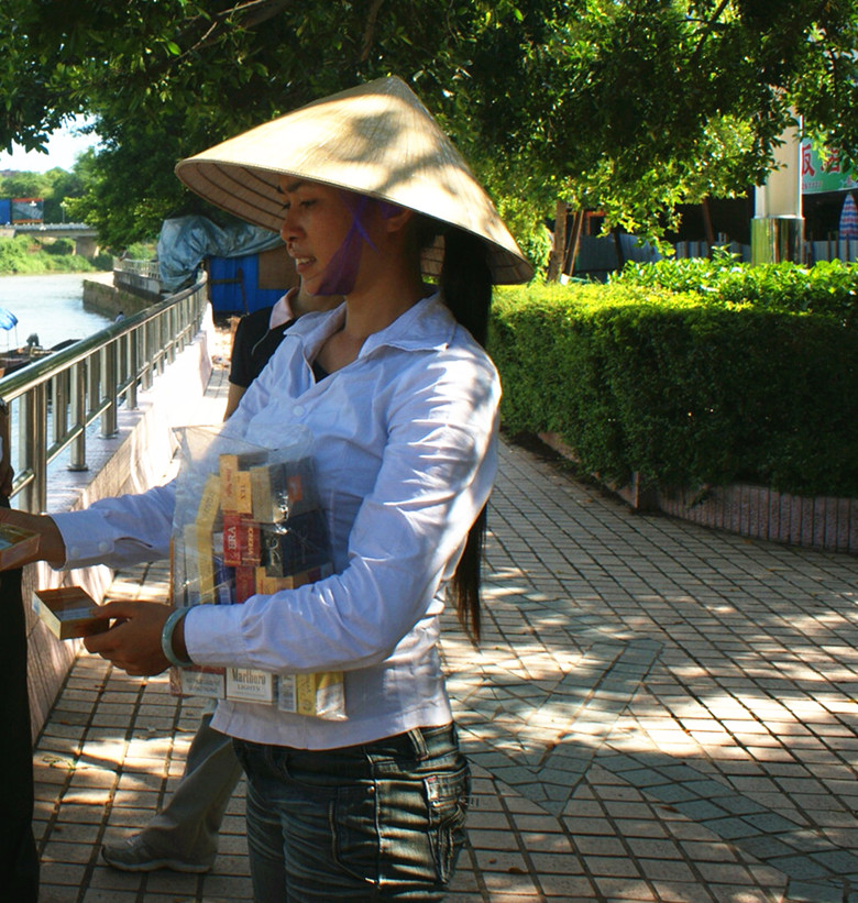 越南小贩向游人兜售商品