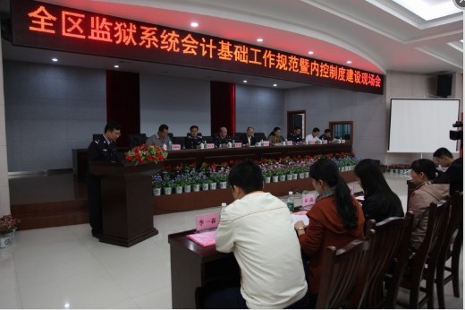 参观结束后,张处长主持召开了全区监狱系统会计基础工作规范暨内控制度建设现场会。会上,黎塘监狱监狱长钟峰致词,对局领导和各监狱财会代表莅临监狱检查指导表示热烈欢迎。与会代表现场观看了黎塘监狱专题短片,并听取了该监狱财务科科长对监狱会计基础工作规范暨内控制度建设的经验介绍。