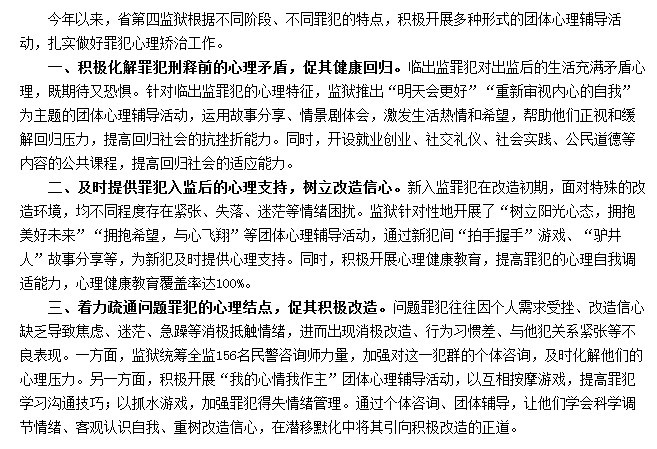 浙江省第四监狱积极开展心理咨询工作