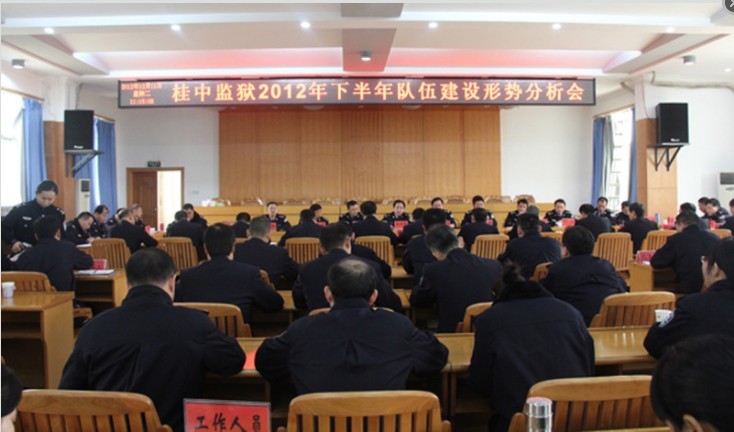 为认真贯彻落实党的十八大精神,深入查摆队伍建设中潜伏的隐患和矛盾,凝聚力量顺利完成年初制定的各项工作任务,夺取监管安全大决战的全面胜利。12月11日上午,桂中监狱在监管指挥中心七楼会议室召开了下半年队伍建设形势分析会,对下半年队伍建设情况进行了全面总结分析,并对下一步如何抓好队伍工作提出了要求。监狱、公司领导及调研员、监区正职领导、纪检监察员以及机关科室负责人约70人参加了会议。会议由该监狱政治处邓高主任主持。