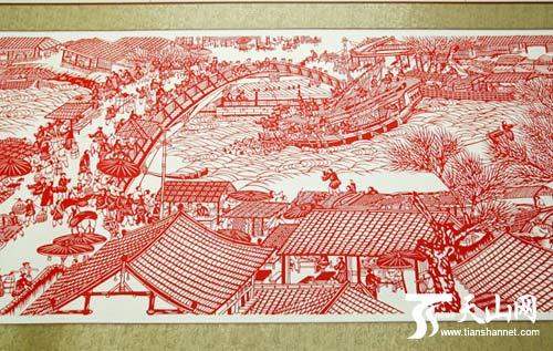 天山网讯(通讯员颜北容 舒琦摄影报道)一幅长1700厘米、宽68厘米的剪纸长卷《清明上河图》被徐徐展开。广阔的原野、悠悠的小船、繁华的市场、过往的人群,仕女、商人、僧侣、儿童惟妙惟肖……这幅剪纸画卷作者是新疆监狱管理局机关党委副书记、新疆民间艺术家协会会员董伟用四年业余时间精心创作的。