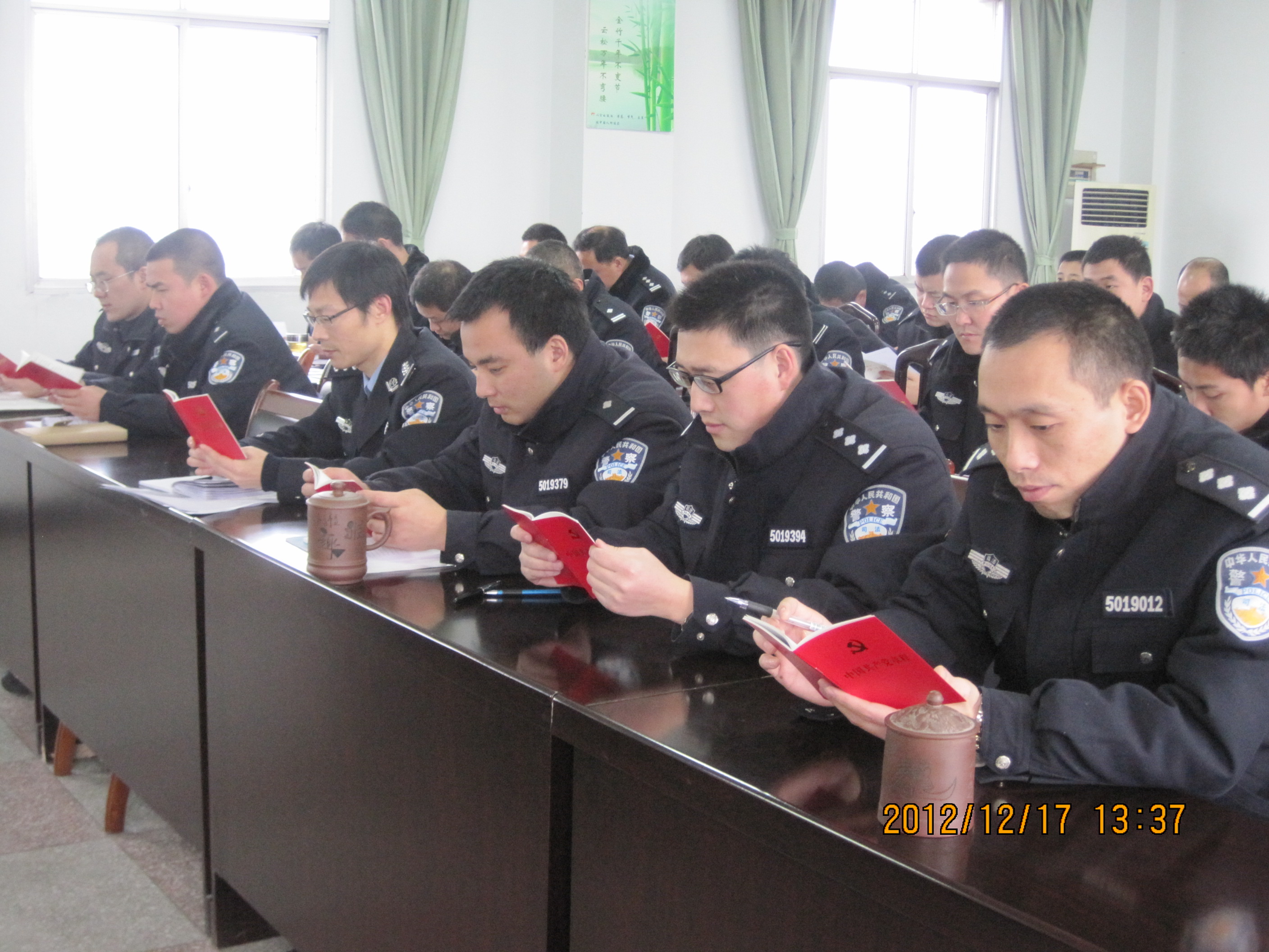 首先,由支部书记带领党员民警重温了入党誓词,组织学习了《十八大文件汇编》、《中国共产党章程》等书内部分章节,党员民警通过回顾中国共产党91年来所走过的光辉历程,增强党员民警的责任感、紧迫感和使命感,增强基层党组织的凝聚力和战斗力。