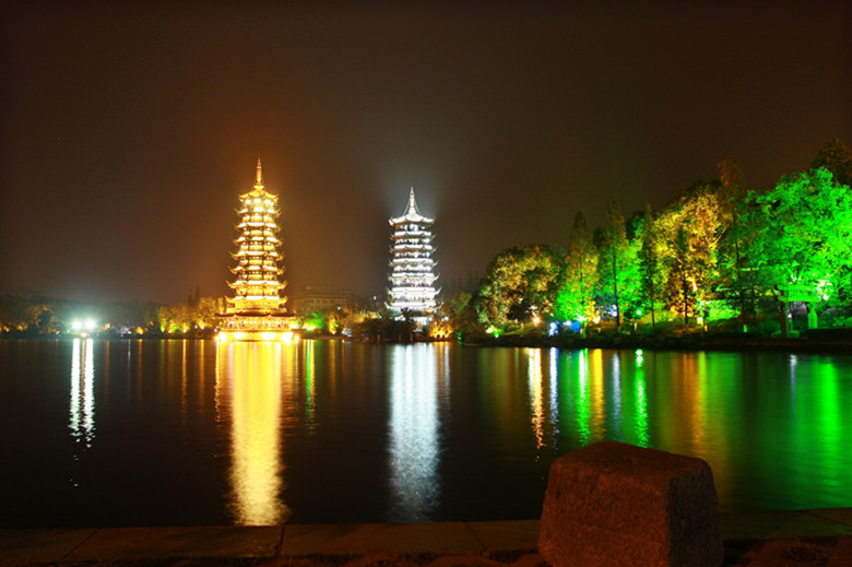 桂林双塔夜景