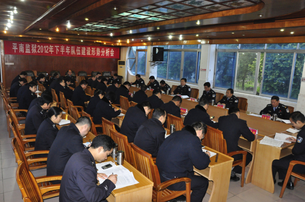 为总结下半年监狱警察队伍建设工作,认真分析党员警察职工的思想状况,查找存在问题、深入剖析原因、采取切实有效的整改措施,部署新的一年队伍建设工作安排,进一步加强队伍建设,12月27日,平南监狱召开2012年下半年队伍建设形势分析会。