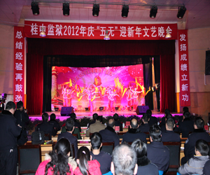 2012年12月31日晚,桂中监狱监部大礼堂灯火通明、荧光闪烁,人潮涌动、人声沸腾。该监狱在此隆重举行2012年庆“五无”迎新年晚会,自治区监狱管理局党委委员范庆平等领导亲临晚会现场,与该监狱全体警察职工共同观看了晚会。晚会在一曲喜庆欢快的“开门红”音乐声中拉开帷幕。