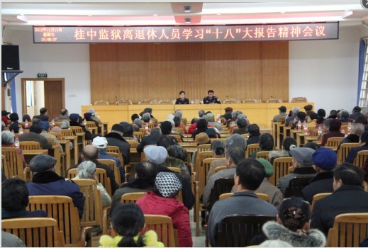 为认真落实老同志政治待遇,切实把老同志的思想引领到党“十八”大的精神上来,充分发挥老同志老有所学、老有所为的作用,为监狱事业发展添砖加瓦。在学习宣传贯彻党的十八大精神活动中,桂中监狱在抓好在职党员警察职工学习宣传贯彻活动的同时,认真组织离退休老同志开展党的十八大精神的学习宣传活动。