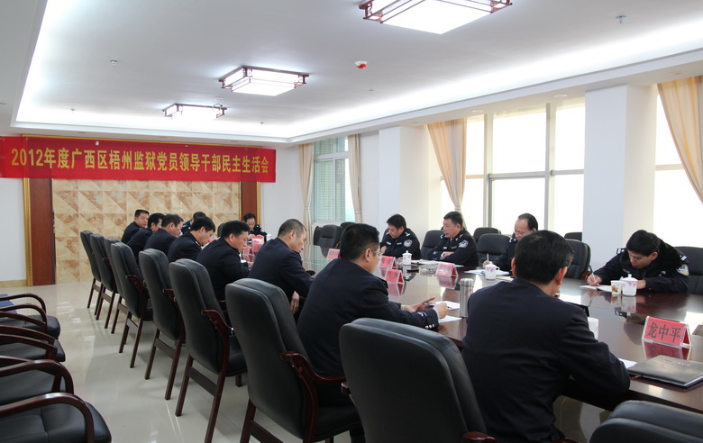12月29日,梧州监狱召开了2012年度党员领导干部民主生活会,自治区监狱管理局陶纯副局长率工作组受监狱局党委委派到会指导工作。