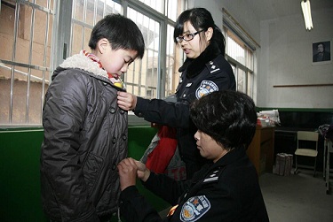 当把物品亲手递至孩子们的手中时,那些灵动的双眼中流露出的期盼、兴奋与感激,让在场的志愿者们感触颇深。“警察阿姨好”、“谢谢警察阿姨”、“警察阿姨再见”成为这些孩子们最频繁的话语,简单却真诚。游戏、交谈、合影…在青年志愿者的积极调动下,本是腼腆尴尬的气氛转眼间变得自然亲切起来。大院、教室与操场,处处回荡着孩子们与志愿者的笑声,让人快乐,更让人动容。“我很喜欢 现在的我,虽然我 还不太完美”培康学校的大墙如是说,却也是这群特殊孩子快乐学习、积极生活的最好写照。
