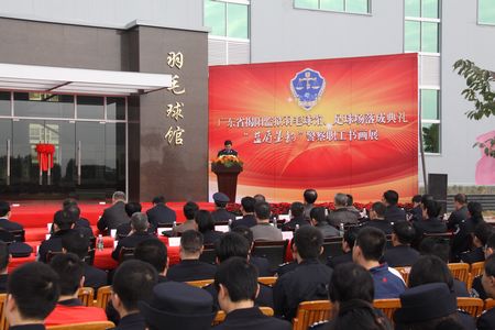 1月8日,暖阳高照,惠风和畅,揭阳监狱举行羽毛球馆、足球场建成启用典礼暨“蓝盾墨韵”警察职工书画展活动。省监狱局党委委员、省广裕集团公司总经理杨伟杰,局工会、组教处负责人及多位书画名家出席了活动。
