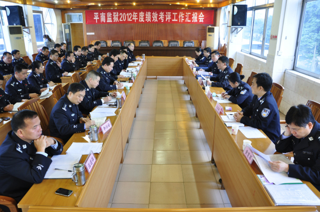 在“平南监狱2012年度绩效考评工作汇报会”上,监狱党委副书记、政委赵广龙向工作组汇报了监狱2012年绩效指标执行完成情况及扎实推进绩效目标管理所取得的成绩:监狱保持持续安全稳定,连续实现监管12年无罪犯脱逃,监管改造工作实现“五无”七连冠目标;监狱经济稳步增长;监狱搬迁布局调整工作稳步推进;党的建设和警察职工队伍建设得到进一步加强,全年无警察职工受党纪政纪处分;监狱行政后勤、工青妇等工作取得新发展,为监狱工作发展提供坚实保障。赵政委还就平南监狱目前绩效工作存在的问题、整改措施等方面作汇报。听取汇报后,唐组长向与会人员反馈了在2012年12月中旬进行的绩效检查中平南监狱的相关情况,并对台账资料存在的问题进行了重点说明,提出了工作要求。