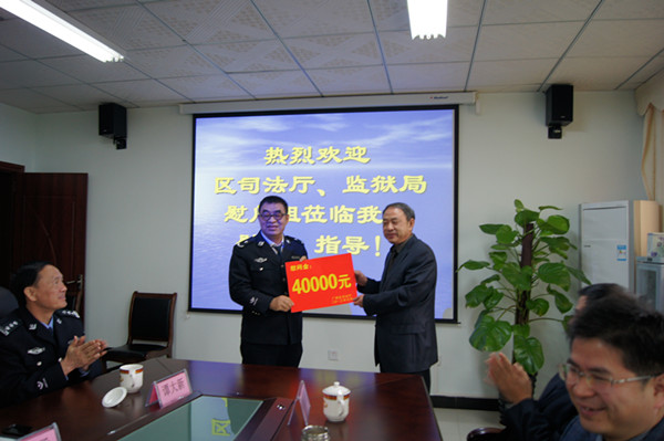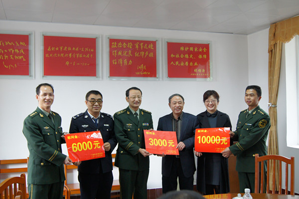 随后,王副厅长一行轻车简行,与贵港监狱领导一起乘坐监狱中巴车前往10公里以外的驻监武警中队慰问,与武警官兵亲切座谈。座谈中,王荣华副厅长指出,驻监武警中队与监狱配合密切,共建互进,为监狱的安全稳定作出很大的贡献!贵港监狱能取得“五无”九连冠的好成绩,离不开武警中队的大力支持,希望监狱和武警中队在新的一年里一如既往精诚合作,确保监狱安全稳定。武警贵港市支队马可副支队长表示,在新的一年里,为了确保武警中队和监狱的共同目标万无一失,一定会把王副厅的指示落到实处。王副厅长、赖处长、高延钧监狱长分别给武警中队送上新年慰问金。