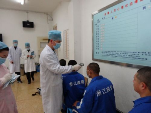 上午9时05分,所医疗康复中心值班医师报告:“八大队所在4号楼2楼,有5名戒毒人员出现发热、头痛、流涕情况,疑似甲型H1N1流感。” 接到报告后,演练总指挥立即发出指令:“立即启动甲型H1N1流感应急处置预案”。各组人员严格按照预案规定要求,迅速展开“甲流”疫情防控工作:第一时间向省局和拱墅区卫生防疫部门报告,由所在辖区疾控中心专家对防控工作给予指导和协助;对患病戒毒人员根据其病情认真诊断、及时救治;对密切接触者就地实行医学隔离观察;对各大队开展排摸、普查工作;开展甲型H1N1流感防治健康宣教工作,消除戒毒人员恐慌心理;各应急分队分工协作,有序开展对流行病学调查、病员救治、预防消毒等各项工作……