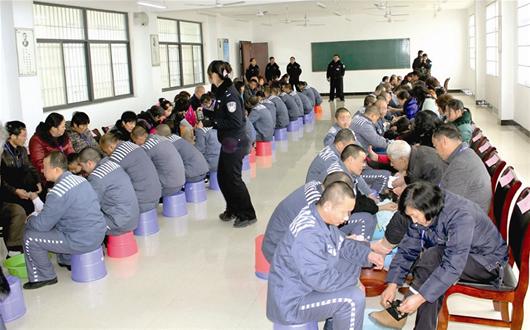 图文:47名服刑者集体给父母洗脚