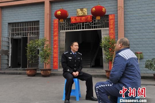 垫江监狱民警对“三无”服刑人员王海强(化名)进行春节前谈话。 薛会胜 摄