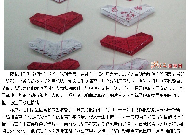 浙江省第二监狱限制减刑类罪犯为管教民警送上特殊新年礼物