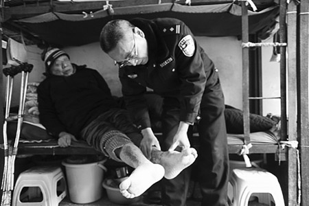 唐全为老年服刑人员脚部按摩