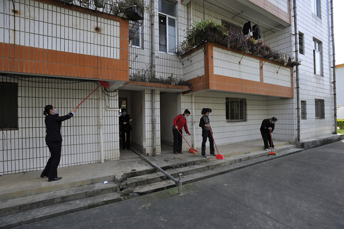 “大扫除”活动设在场部职工宿舍区,从自身家门口做起,旨在从给自家小孩树榜样做起。在活动过程中,志愿者们找来了扫把、垃圾铲、拖把和水桶等扫除工具,在划定的卫生区域里打扫卫生。志愿者们分工合作,有秩序的进行着扫地、提水、拖地等工作。各志愿者对大扫除活动也都乐在其中,组织开始竞赛比拼,活动现场的气氛十分活跃。通过大家的辛勤劳动,我监宿舍区楼内的各个角落都分外整齐,焕然一新。