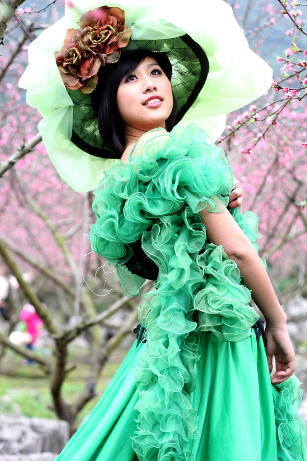 平山桃花节上的模特