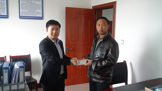 (图为:县司法局工作人员向社区矫正人员徐正传赠送手机)