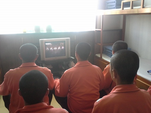 (图为:戒毒人员观看禁毒教育专题片)