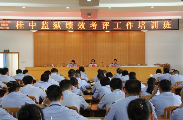 5月16日上午,桂中监狱在监管指挥中心七楼举办绩效考评培训班,监狱及公司科室、直属机构、分公司、糖厂、监区等各部门负责人及负责绩效工作的同志约100人参加培训。