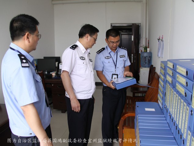 5月17日,自治区监狱管理局副政委蒋国鸿到宜州监狱检查指导工作。