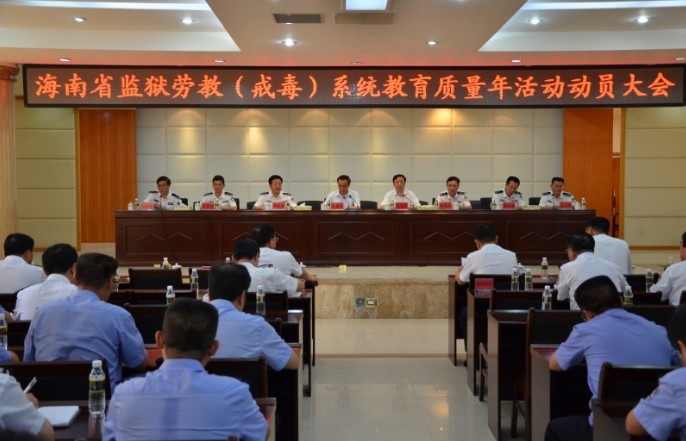 5月31日下午,省司法厅召开了全省监狱劳教(戒毒)系统“教育质量年”活动动员大会。大会由省司法厅副厅长高富强主持,省监狱管理局副局长高晓成和省劳动教养(戒毒)管理局副巡视员崔永福分别宣读了《海南省监狱系统教育质量年活动实施方案》、《海南省劳教场所教育质量年活动实施方案》和《海南省戒毒场所教育质量年活动实施方案》,省司法厅厅长屈建民作了动员讲话。省司法厅、省监狱管理局和省劳动教养(戒毒)管理局的主要领导,两局全体民警、以及全省各监所单位的领导、各业务部门负责人共300余人出席了会议。