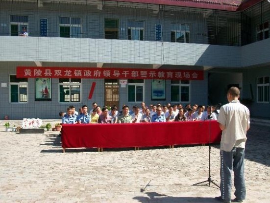 6月27日上午,受黄陵县双龙镇政府的委托,黄陵监狱在其警示教育基地一监区为双龙镇政府干部及各行政村支部书记共计60余人举办了一场寓意深刻的警示教育现场会,并向与会人员介绍了监狱基本情况,安排参观了服刑人员学习、生活、改造现场。