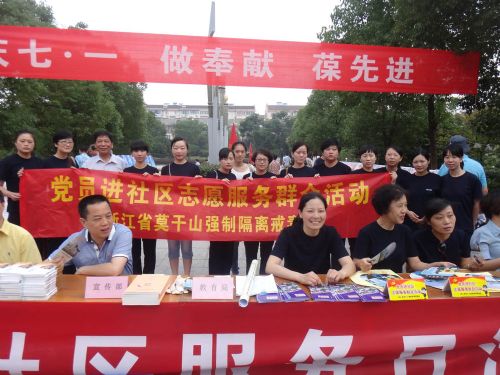 6月30日,省莫干山强制隔离戒毒所组织21名党员志愿者来到德清县武康镇营盘公园,开展以“亮出党员牌,认领服务岗”为主题的党员志愿者服务活动。 在现场,志愿者们组成宣传小分队向辖区居民介绍毒品的危害及防范、禁毒戒毒的相关政策,派发禁毒宣传清凉扇。同时,另一支志愿者队伍为公园进行绿化除草、清除牛皮癣、扫地等净化环境的义务劳动。此次活动充分发挥党员干部示范带动作用,也让机关党员深入基层、了解民意,进一步增强党的宗旨观念和服务意识。 (省莫干山强制隔离戒毒所)