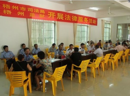 随后,张洪监狱长与蒙华局长率领监狱警察、服务站工作人员到梧州监狱会见大厅,共同开展法律服务活动,活动得到服刑人员家属的积极响应。
