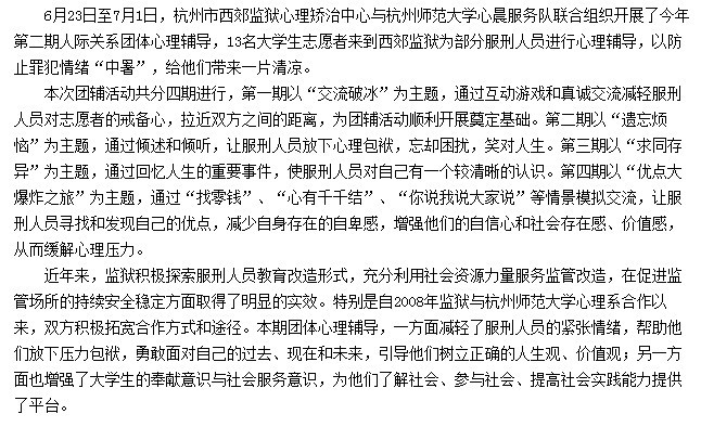 杭州市西郊监狱与杭师大联合开展第二期人际关系团体心理辅导