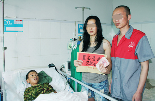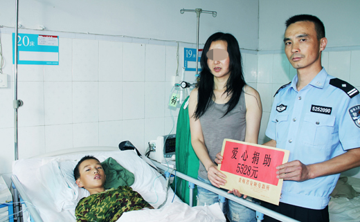 12时30分,袁成相副政委安排专车和警力,民警带着强戒人员谢文淦一起,将安顺劳教(戒毒)所第一批爱心款5528元送到正在抢救的强戒人员谢文淦之子的亲属手中。安顺劳教(戒毒)所其它大队的学员和民警的捐款也在陆续的进行中。捐款活动中强戒人员谢文淦向捐款的民警和学员鞠躬致谢,场景十分感人。当民警将捐款交到该员亲属手中时,谢文淦本人和家属泪流满面,十分激动。强戒人员谢文淦表示:“我将永远记住党和政府的恩情,永远不忘劳教所和民警的恩情,我将永不沾毒,用实际行动报答劳教所的关心。”