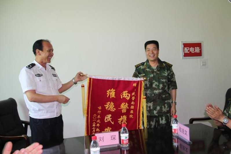 (通讯员 梁呈浩刘琛)长期以来,新疆喀什未成年犯管教所党委高度重视军警共建工作,有效推动了“三共”活动不断向纵深发展。八一来临之际,该所党委副书记、政委帕日哈提・尼牙孜同志一行8人于8月1日代表喀什未成年犯管教所全体民警职工赴南疆武警医院、武警喀什地区支队进行了节日慰问,为广大武警官兵和指战员送去了慰问金和锦旗。