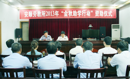 9月3日,在举行“金秋助学行动”资助金发放仪式上,安顺劳教所政委张登群出席仪式并作了讲话。贵州省安顺劳教所开展的“金秋助学,爱心延续”活动,共发放资助金2万余元。