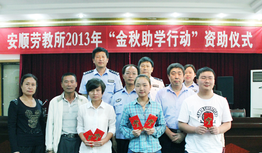 9月3日,在举行“金秋助学行动”资助金发放仪式上,安顺劳教所政委张登群出席仪式并作了讲话。贵州省安顺劳教所开展的“金秋助学,爱心延续”活动,共发放资助金2万余元。