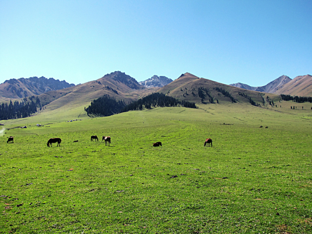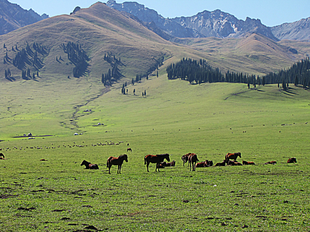 那拉提草原,位于新疆伊犁州新源县境内,是世界四大草原之一,亚高山草甸植物区,辽阔的牧场,缓缓的河谷、高峻的山峰、茂密的云杉,遍地的牛羊,毡房点点,引入驻足忘返,入秋时分,走进那拉提草原,放眼望去、绿、黄、红各色互映,将草原点缀得绚丽多姿。