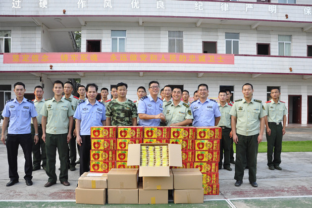 在中秋佳节即将到来之际,广西平南监狱李耀辉副监狱长带领狱政管理科、生活卫生技术装备科有关人员,于9月17日到驻监武警部队亲切慰问武警官兵。