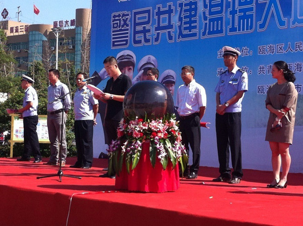 2013年9月27日上午,瓯海区梧田街道参加由瓯海区人民政府、温州市公安局交警支队举办的“警民共建温瑞大道省级示范路”大型宣传活动,此次活动在瓯海区梧田文化广场开展,梧田街道禁毒办借此契机,开展“警民携手,抵制毒品”禁毒宣传活动。