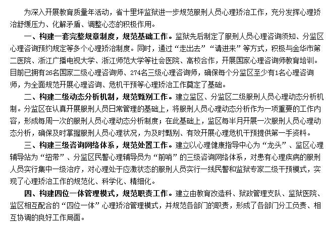 浙江省十里丰监狱进一步规范心理矫治工作