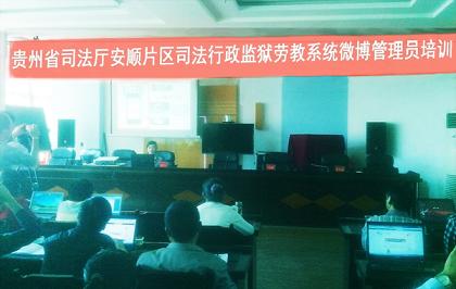 10月10日,贵州省司法厅举办安顺片区司法行政及监狱劳教系统政务微博管理员培训,安顺市司法局及安顺市各县区司法局分管副局长及政务微博管理员,监狱劳教系统微政务博管理员参加了培训。省司法厅办公室主任汤敏、厅政务微博管理员余洁、安顺市司法局机关党委书记徐佳丽,《贵州司法》编辑章林出席开班仪式。