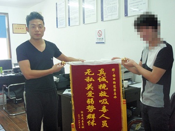 2013年10月15日,社区戒毒人员童某某向梧田街道禁毒办赠“真诚挽救吸毒人员,无私关爱弱势群体”锦旗,以表这几年来对他的关心和帮助。