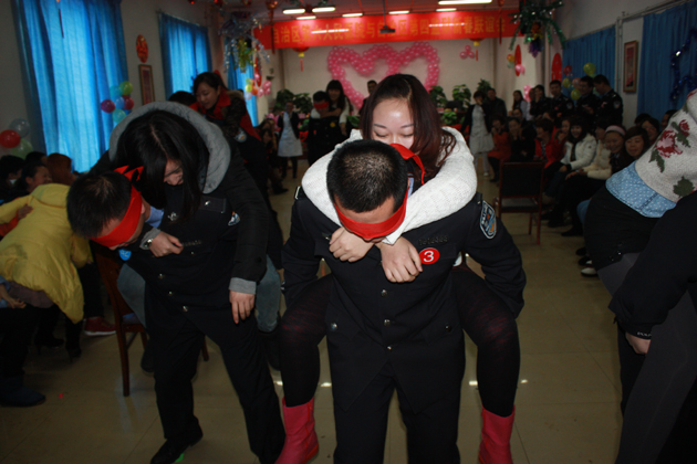 联谊活动以别开生面的团体游戏、风采展示等互动游戏,设瞎子瘸子、金鸡独立、心有灵犀、喝啤酒比赛、微信摇一摇、体力大PK等趣味游戏活动,男女嘉宾随机分成5组,以组为单位进行交流互动,要求男女队员共同参与,相互配合。在2个多小时的互动活动,青年们在无限的欢乐中也逐渐放下拘谨,很快熟悉起来,尽情展示青春风采,不少青年男女还交换了联系方式,向心仪的对象表达了心声。