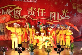 这是一场由民警和学员同台演出的精彩盛会。上午10时整,演出在热烈奔放的安塞腰鼓中拉开了序幕;相继登场的陕北秧歌欢快活泼,具有浓厚的地域风味;快板《阳光温暖戒治路》合辙押韵,道出了戒毒学员对民警的感恩之情;陕北说书《牛牛上学》自弹自唱,诙谐幽默;男声独唱《回家》表达了学员对亲人的思念与祝福之情;歌伴舞《从头再来》展示了戒毒学员积极戒治,重塑新生的信心与勇气;小品《妈妈,儿想您》震撼人心,催人泪下,将整台演出推向了高潮。精彩纷呈的节目深深地打动了在场的每一位观众,博得了阵阵热烈的掌声。