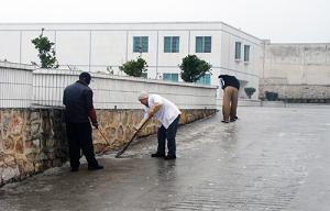 强戒学员清除路面凝冻
