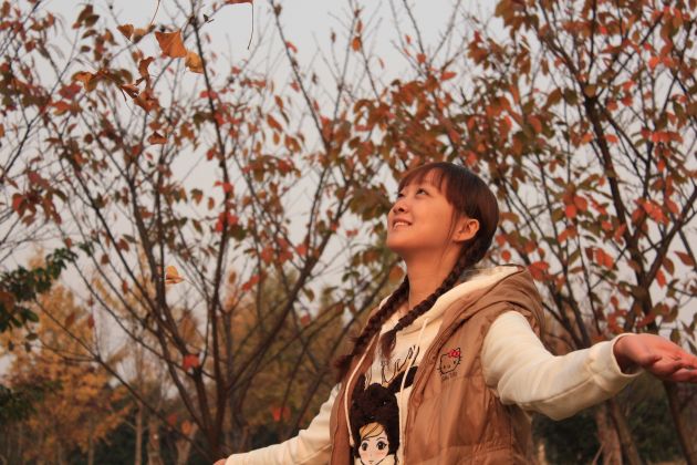 夕阳、落叶与美女(摄影:桂林监狱 时荣福)