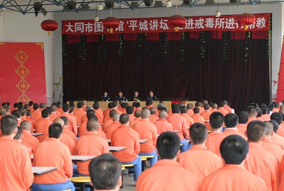 2014年5月21日,山西省大同市戒毒所“场所文化月”之帮教活动在这里如期举行,本次活动特邀请到大同市图书馆馆长陈建文及“平城讲坛”讲师、市国学教育学校校长张亦冰。本次帮教活动旨在让中国传统文化走进戒毒所,让强戒人员深刻领悟国学精髓,使他们从中国几千年来的文化积淀中汲取养分,依良知而为,踩正道而行。