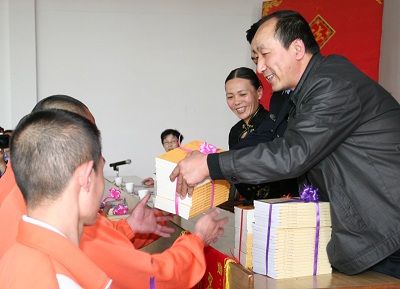 活动于下午3时正式开始。首先,图书馆馆长陈建文代表北京智慧之旅爱心团向该所赠书200册,光盘13张,内容包括《中国传统文化的当代价值》、《群书治要》、《解读弟子规》等相关书目,为强戒人员进一步学习中国传统文化提供了宝贵的资料。之后,在强戒人员期盼的眼神中,张亦冰女士开始授课。大同国学教育学校是由大同市教育局主管、大同市民政局注册成立的一所公益教学单位,学校以“学为人师、行为世范、修身为本、教学为先”为宗旨,以“孝悌忠信、礼义廉耻、仁爱和平”为主要教学内容。张老师在授课过程中,结合强戒人员的家庭、生活和改造中碰到的实际问题,深入浅出地讲解圣贤教诲,用一棵大树的形象事例揭示出了人生真谛,唤醒了强戒人中的爱心和孝心,博得了强戒人员的阵阵掌声。